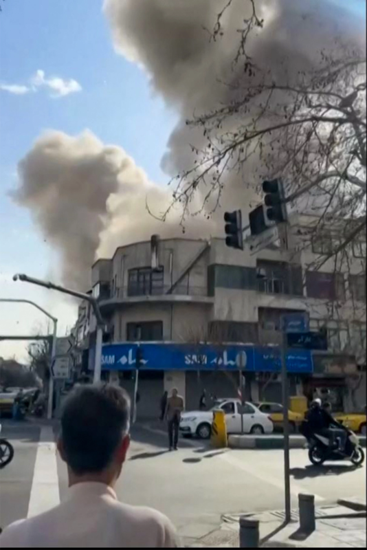 Cột khói bốc lên trên đường phố Tehran, Iran, ngày 28/2. Ảnh: AFP