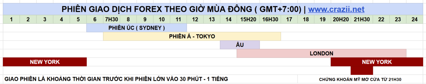 • Giao phiên London -> Mỹ : 19h – 20h