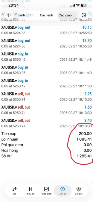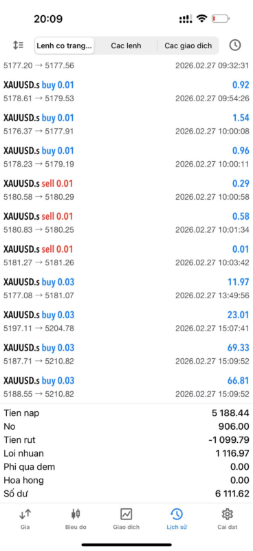 📊 TỔNG KẾT ĐIỂM VÀO LỆNH THEO TÍN HIỆU CRAZII – XAUUSD (27/02)